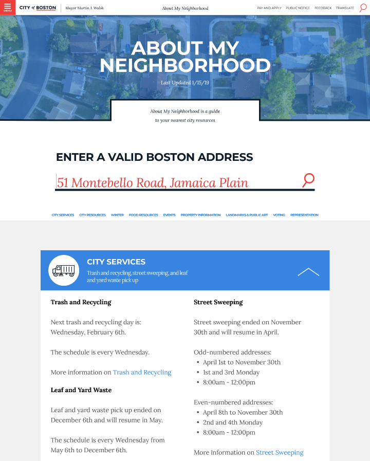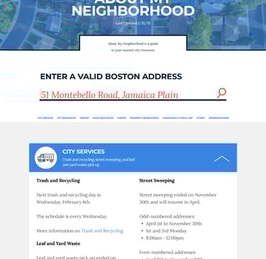 We believe that by creating an easy to use feature that incorporates all the important city resources, services, emergency info, etc. in one place, then Bostonians will find the site to be more accessible, easier to navigate and more satisfying.