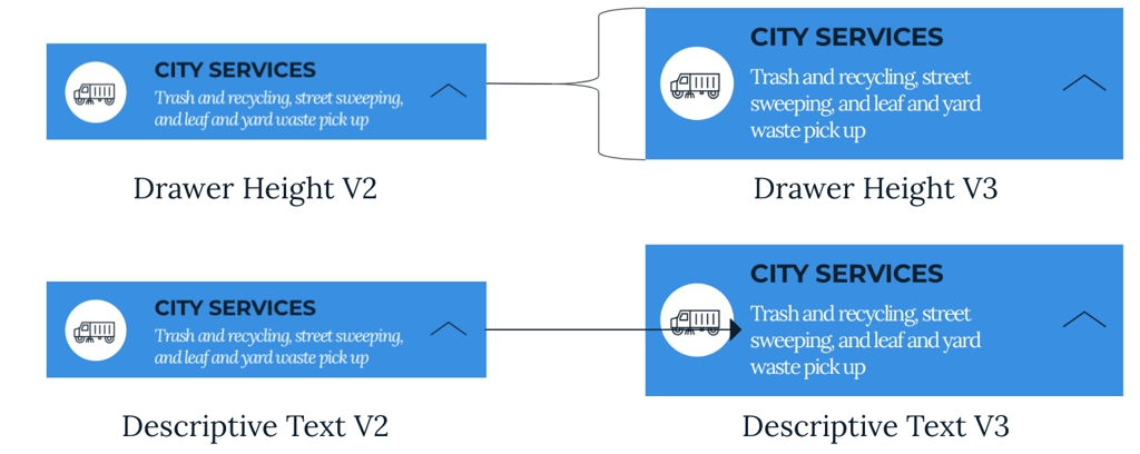 The events category did not have a big enough banner to hold the date of event inside it. Also, this section was not originally a drawer because it was supposed to stand alone as a promotional addition at the bottom. However, users wanted continuity and so we created a drawer for this category to match the rest.