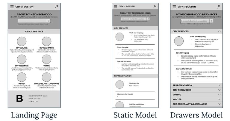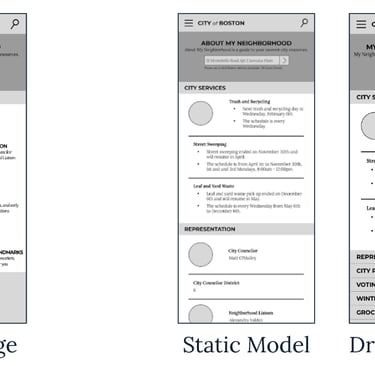 The Department of Information Technology in the City of Boston asked our team of four to redesign a legacy feature based on their existing research. This feature helps residents learn about nearby city amenities and services. We had three weeks to accomplish this task.