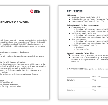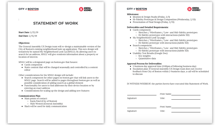 We also needed to create our first Statement of Work with our client. This is all about what we promise to deliver in what time span. This allows us to make sure that we are on the same page as our clients right from the beginning. This project also came at cost for the city: free dollars.